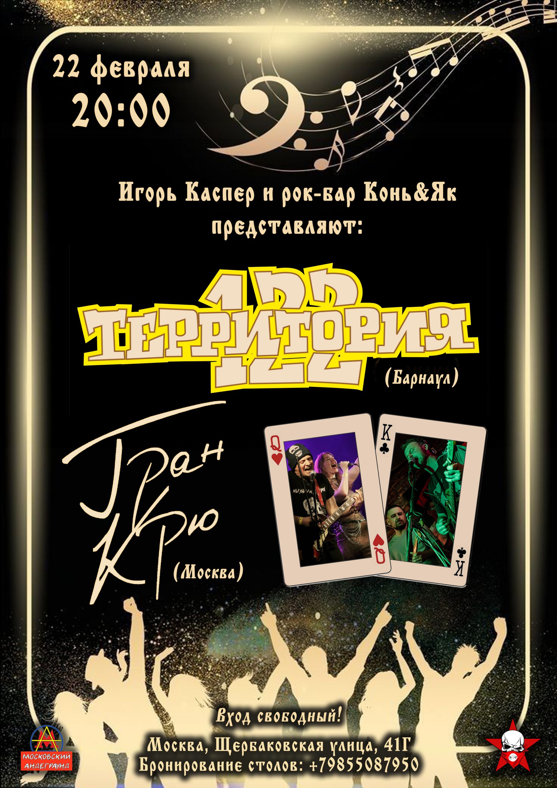 Игорь Каспер и рок-бар Конь&Як представляют: - Роковое воскресенье - - Территория 122 (Барнаул). Легендарная сибирская группа, ранее носившая название Территория 22RUS. После смерти основателя и автора песен Владимира "Свата" Муллова, музыканты решили продолжить начатое им дело. В этот вечер в их исполнении прозвучат лучшие песни за все время существования коллектива. - Гран Крю (Москва). […]